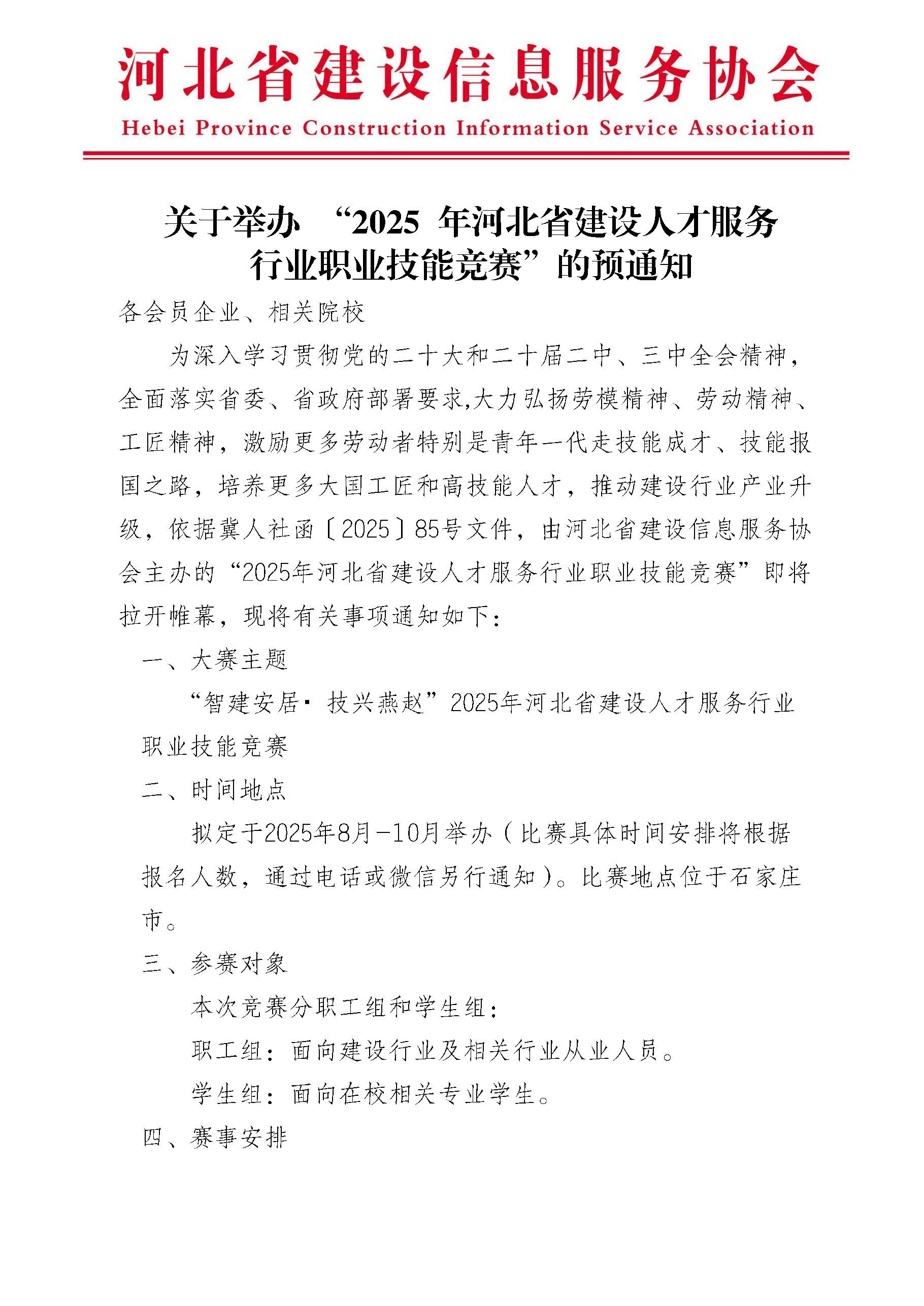 [新闻动态] 关于举办“2025 年河北省建设人才服务 行业职业技能竞赛”的预通知